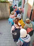 Les enfants de l'école maternelle partent pour manipuler des ballons de baudruche dans une prairie (un espace ouvert).